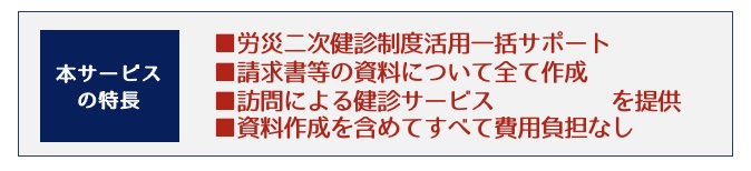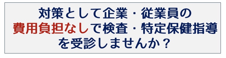 職場の定期健康診断で異常が見つかった従業員に対し、脳血管や心臓の状態を把握するための二次健康診断や特定保健指導を1回/年度、無料で受診できる制度です。